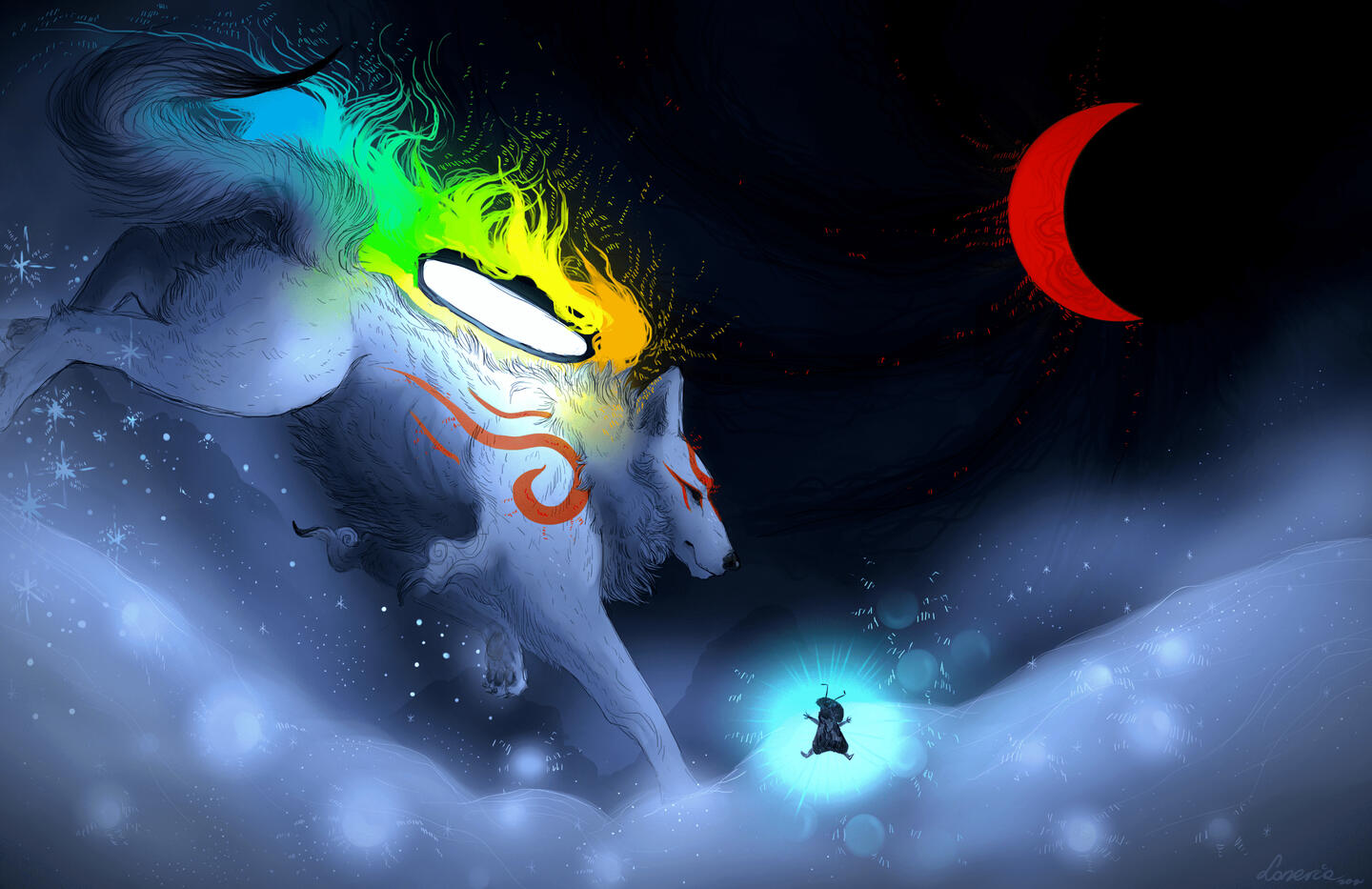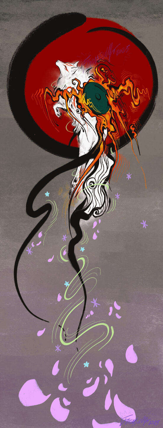 I love mixing my style with sumi-e style. Okami is a huge inspiration in my artworks.