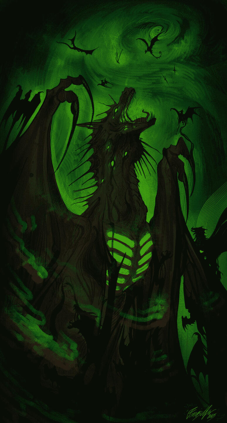 I mainly draw eastern and western dragons, yōkai, dark fantasy and humans.
